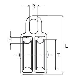 Block dubbelt 50mm med nylon hjul och förzinkad kropp.