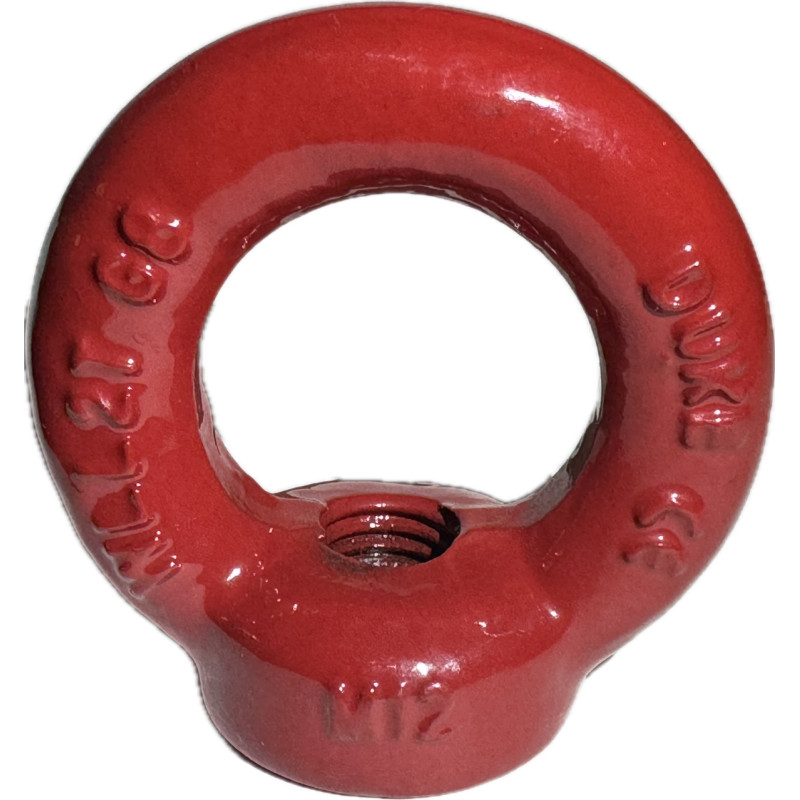 Lyftöglemutter med invändig gänga tillverkad i höghållfast material, hållfasthetsklass 8. Ytbehandlad i röd färg för enkel identifiering. Max last 2t