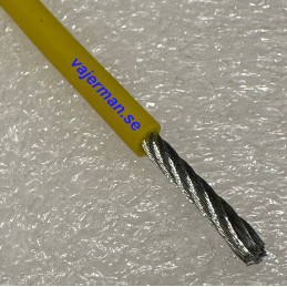 Den gula färgen gör den här vajern perfekt för användning som varnings färg eller där look är viktigt, tillexempel inomhus eller i trädgården. Dessutom är vajern mycket lätt att arbeta med och kan enkelt kapas till önskad längd eller böjas för att passa olika ändamål. vid montering av vajerlås, skall PVC beläggningen avlägsnas där vajerlåset monteras.