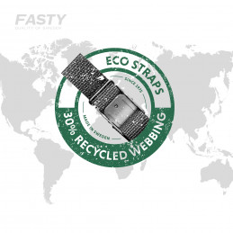 ECO STRAPS, är tillverkade av 30 % återvunnet bandmaterial. Spännet är starkare och lättare mot motsvarande zinkgjutna spännen på marknaden. Den stora öppningen i spännet gör det enkelt att trä bandet, även med handskar på. Själva bandet har hög hållfasthet och färgbeständighet.
