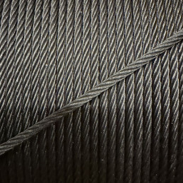 Svart 4mm Vajer 7x19 133 trådig stålkärna. Används med fördel till evenemangs utrustning och teknik till teater, museum, mässor,mm