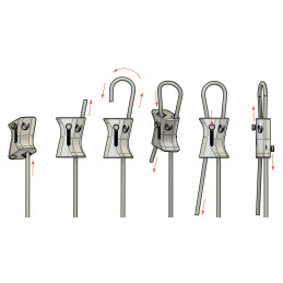 ZC150SS-systemet använder en vajer av rostfritt stål med 1×19-konstruktion, vilket ger hög prestanda i brandutsatta miljöer. Systemet kan användas för att skapa trapetsfästen eller upphängningar med ett enskilt nedhäng.